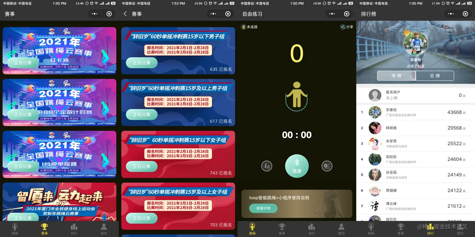 在 2 月 8 日至 2 月 28 日期间,一场科技感十足的全民健身线上运动会在厦门举行,市民可以通过小程序或 APP 线上报名参与「跳绳挑战赛、健身广场舞、线上马拉松、全国广播体操工间操」四个比赛项目,线下完成任务,共同参与这场简单有趣、积极健康的健身云盛宴。