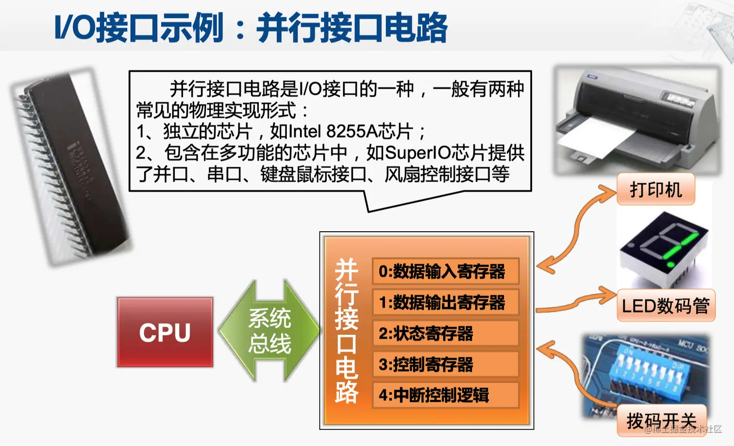 - ◦ 每个I/O端口都需有自己的端口地址(或称端口号),以便CPU访问