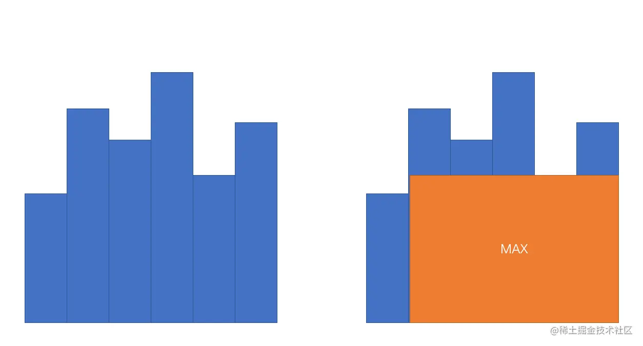 - 计算每个矩形的高确定后,能够画出的最大矩形的面积