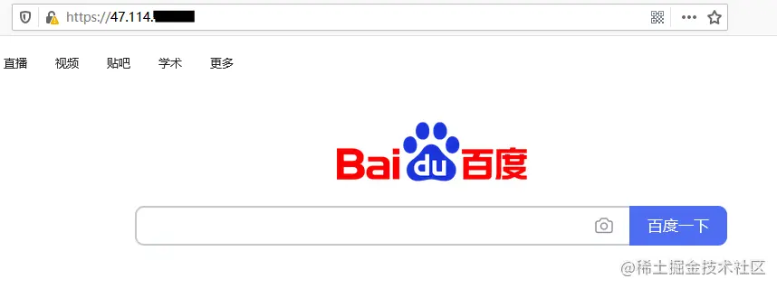 tips1:这里将客户端请求反向代理到了公网百度服务去处理,一般不这样使用。通常Nginx作为一组内网应用服务器集群的反向代理服务器,且Nginx与应用服务器集群之间通过内网通信来保证安全