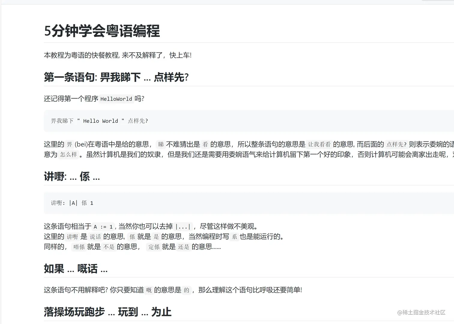 不会粤语不要紧,作者还写了一个简单的粤语教程: