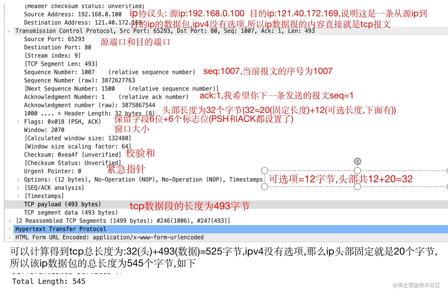 下面详细的标明了对应字段的含义,和报文格式一模一样。如下图