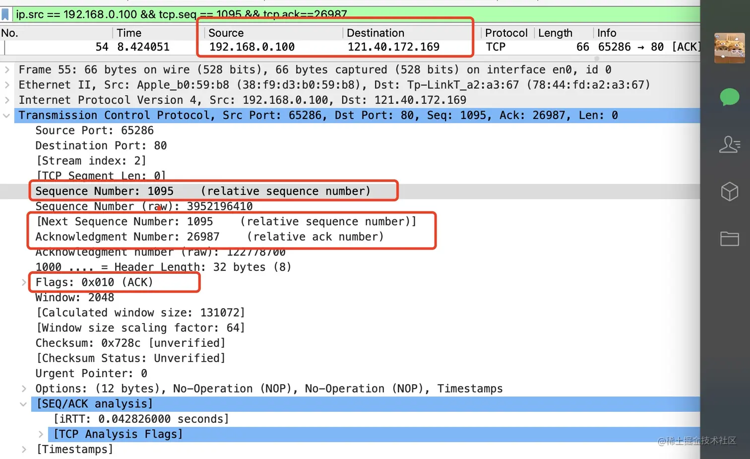 Next Sequence Number(NSEQ)=1095,这个其实就是我自己下一条包的SEQ。
