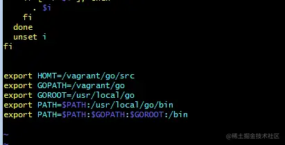 export GOPATH=/vagrant/go export GOROOT=/usr/local/go export PATH=PATH:GOROOT:/bin