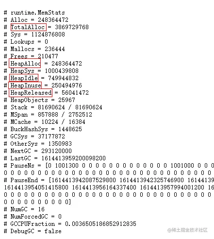 - HeapReleased : 是返还给操作系统的物理内存的字节数