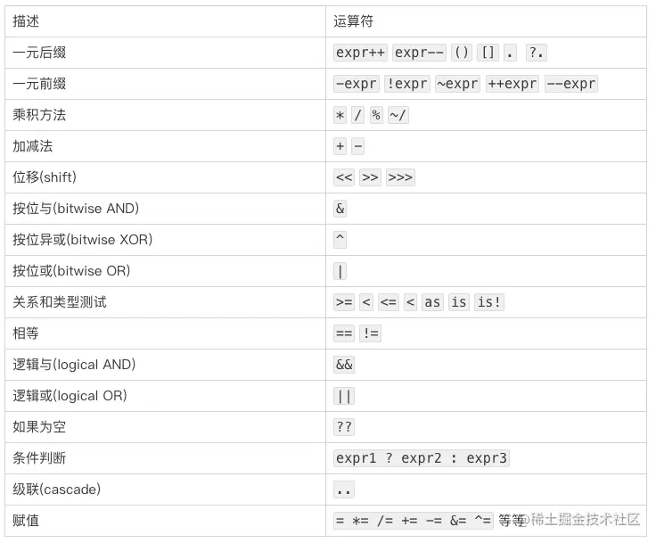 我们都知道计算机高级语言都有大同小异的运算符,那接下来让我们来看看Dart有哪些运算符。