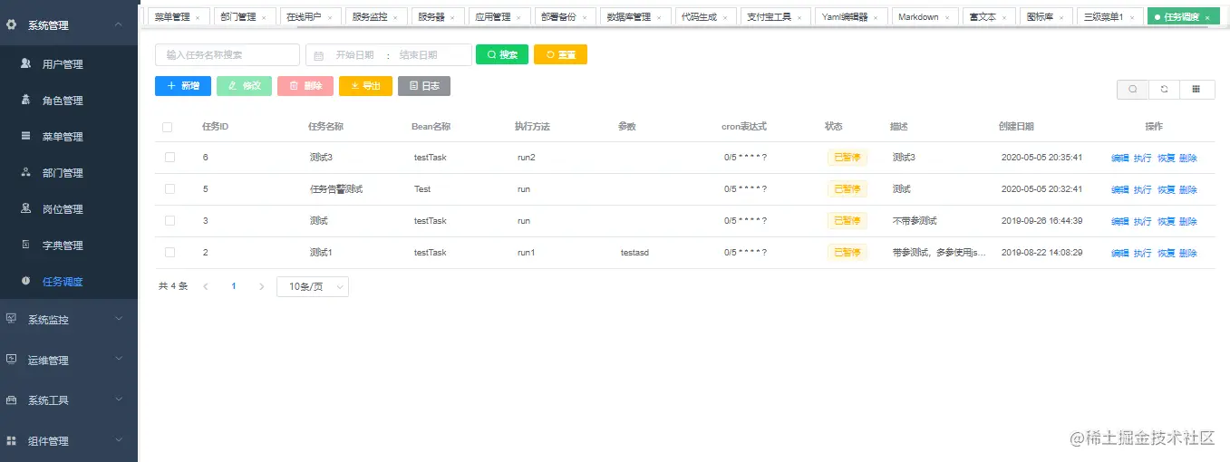 定时任务:整合Quartz做定时任务,加入任务日志,任务运行情况一目了然