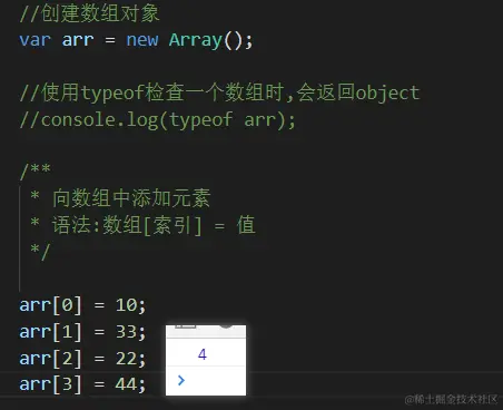 - 数组的存储性能比普通对象更好,在开发中我们经常使用数组来存储一些数据