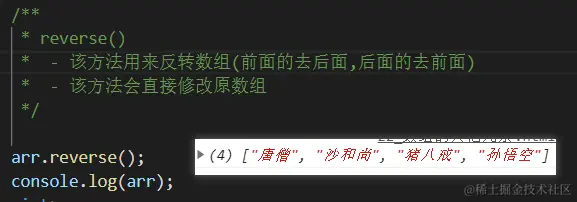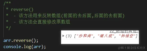 - 该方法用来反转数组(前面的去后面,后面的去前面)