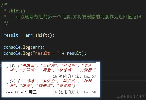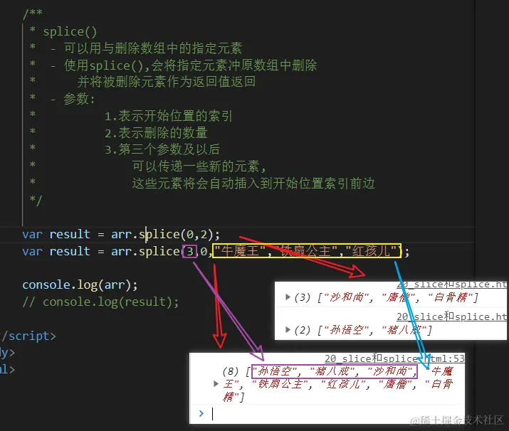 - 使用splice(),会将指定元素冲原数组中删除 并将被删除元素作为返回值返回