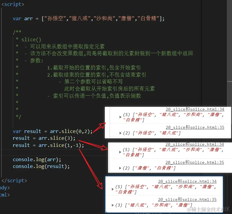 - 该方法不会改变原数组,而是将截取到的元素封装到一个新数组中返回