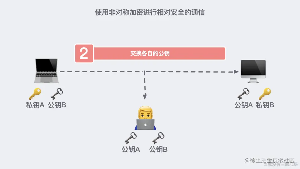 加密是很容易联想到的解决方法。但如何保证传输加密方法的过程不被窃听呢?