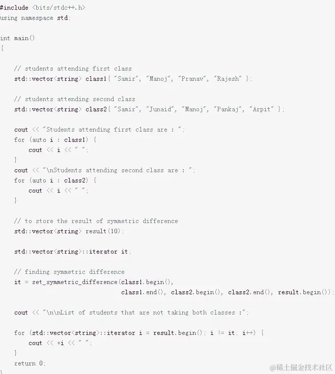核心知识:set_symmetric_difference