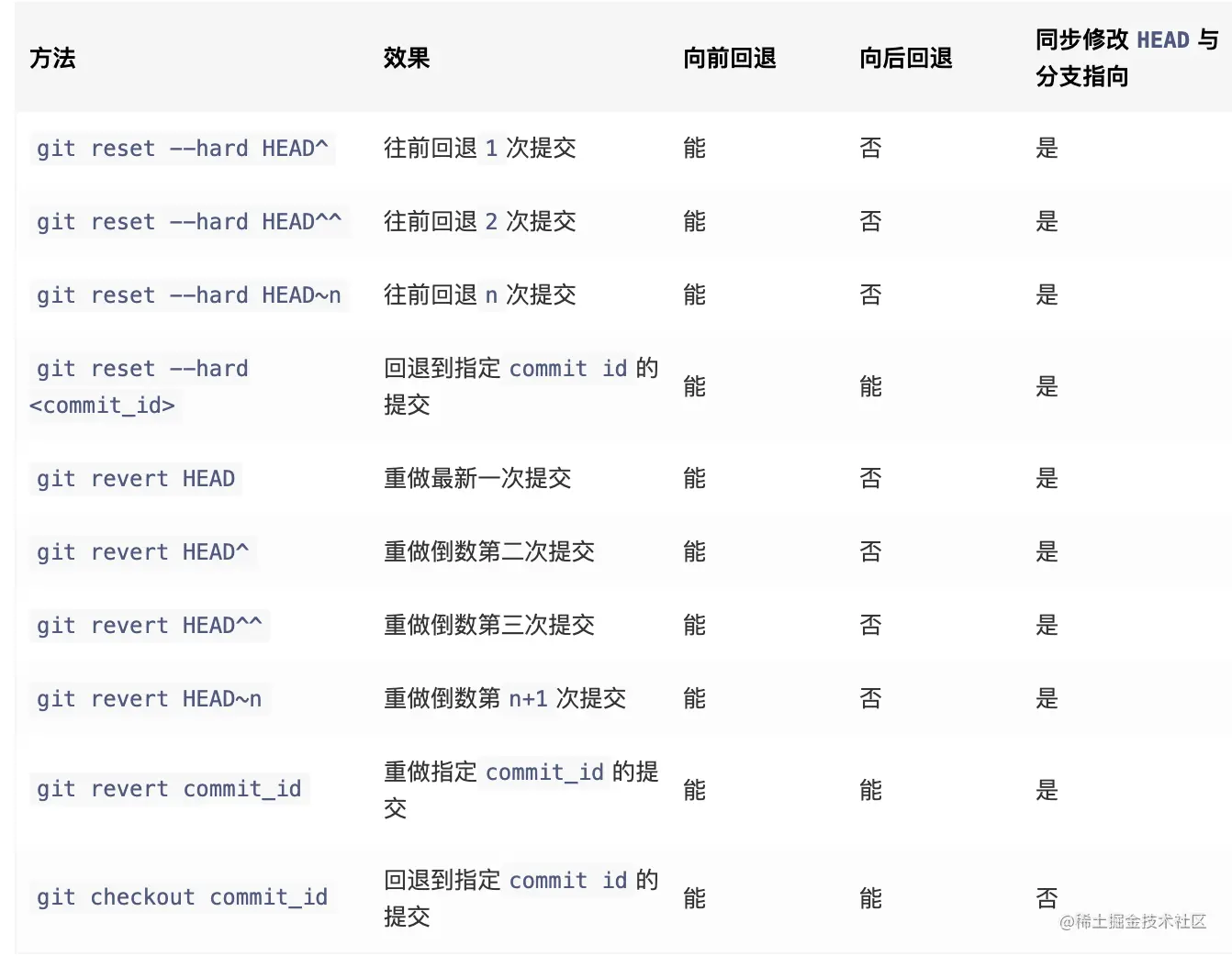 版本回退主要有三大方式:reset、revert和checkout,各方式的比较如下: