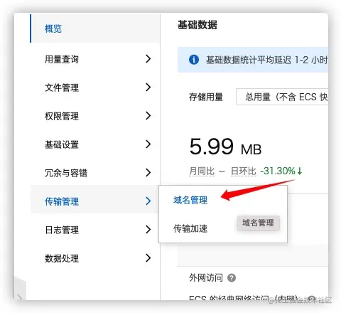 可以在“传输管理-域名管理”中配置域名: