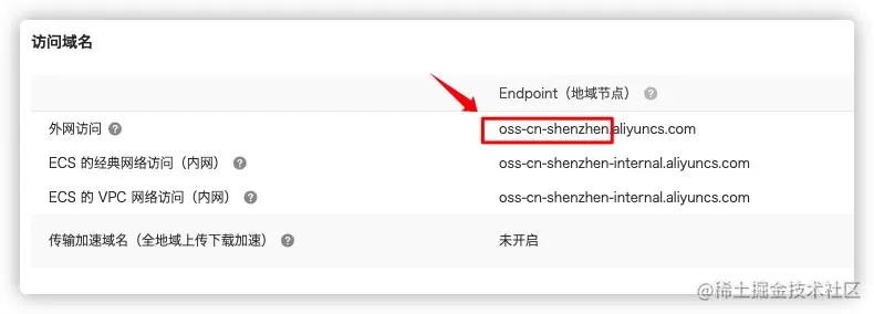 其中区域代码,可以在OSS的Bucket概览当中找到,如下图所示: