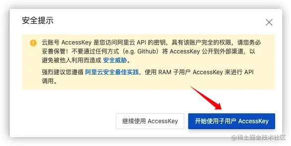 阿里云现在开启了子账户授权的功能,因此我们可以选择跳转到子账户管理的页面: