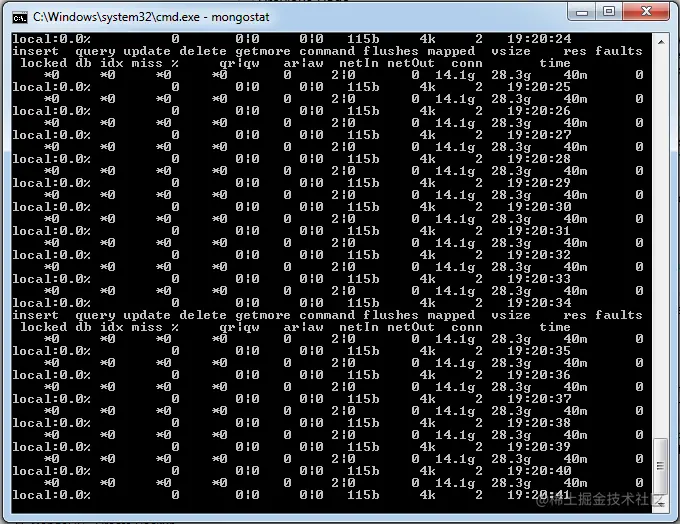 mongostat是mongodb自带的状态检测工具,在命令行下使用。它会间隔固定时间获取mongodb的当前运行状态,并输出。如果你发现数据库突然变慢或者有其他问题的话,你第一手的操作就考虑采用mongostat来查看mongo的状态。