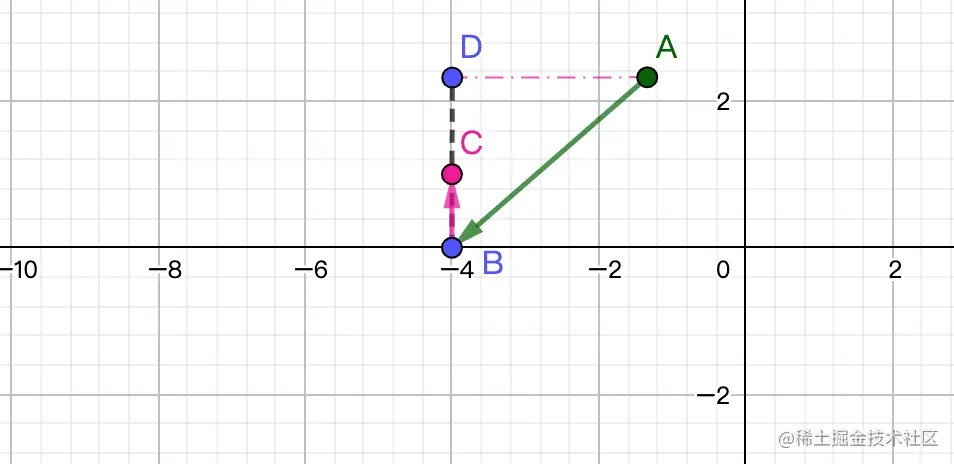 这里我们着重说一下,法线 BC 为什么要是归一化的单位向量:如果 BC 不是单位向量的话,直接点乘是无法得到 BD 长度的,最后的结果要除以 BC 的长度。在 3D 计算中,光线有很多条,而法线一般是较为固定的,也就是说一个小三角形上的法线都是一致的,或者提前计算好的法线贴图规定每个点的法线。提前将法线进行归一化处理好处多多,可以减少很多计算量。