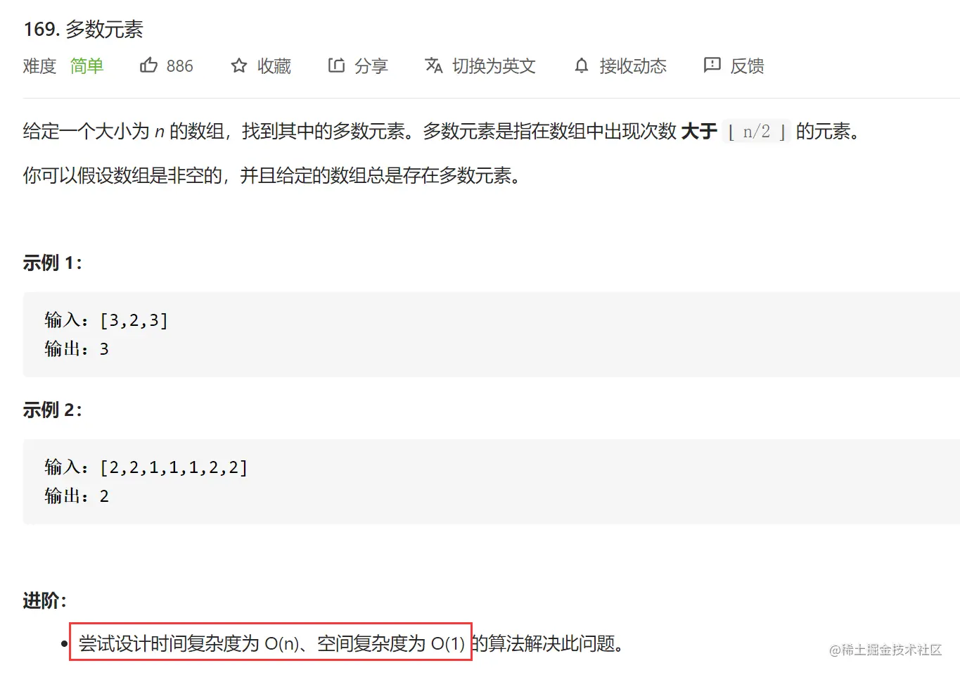 方法二:摩尔投票法 O(N) O(1)