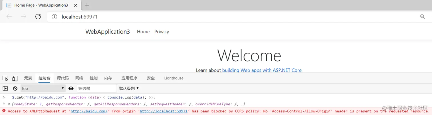 你可以在 WebAPI 中使用 Cors包 或者 Owin中间件 来开启CORS,值得注意的是,一个完整的 request请求 是由 scheme + host + port 三部分组成,所以根据这三个部分就能判断当前请求是否为同源请求,如不是的话,浏览器将会主动进行阻止,如下代码所示: