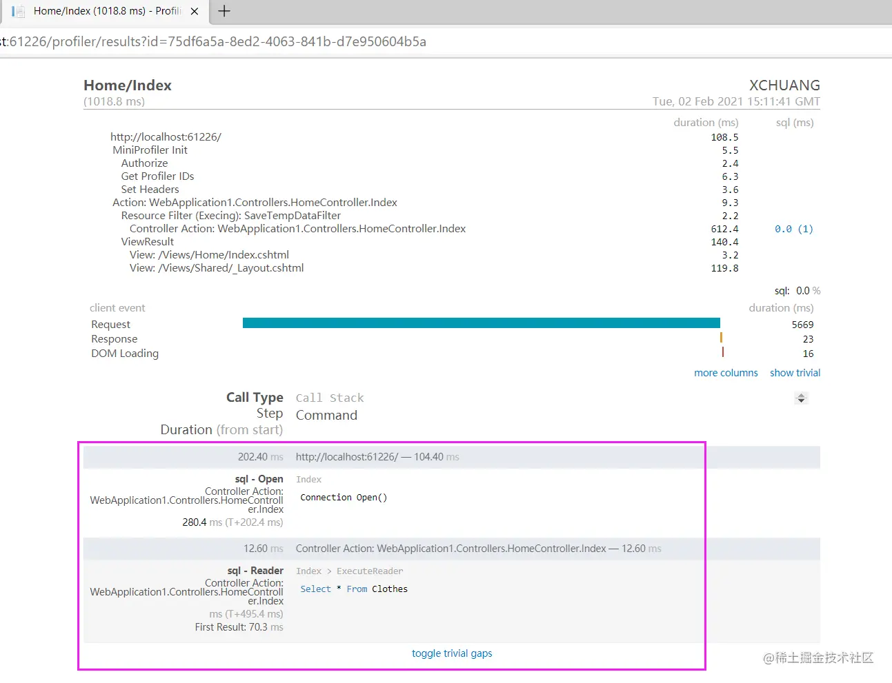 在 ASP.Net Core MVC 中使用 MiniProfiler