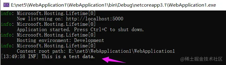 logConfig.Information("This is a test data.");