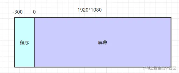 在默认情况下,程序的x位置相对屏幕应该是(-宽度),比如程序宽是300px,那么x位置就是-300px,这样就使得程序在左边应"隐藏"了。