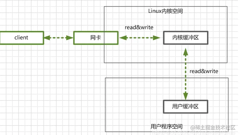 IO模型:会先将字符读入linux缓冲区域,再读入用户线程的区域
