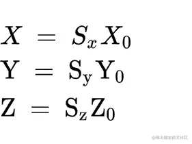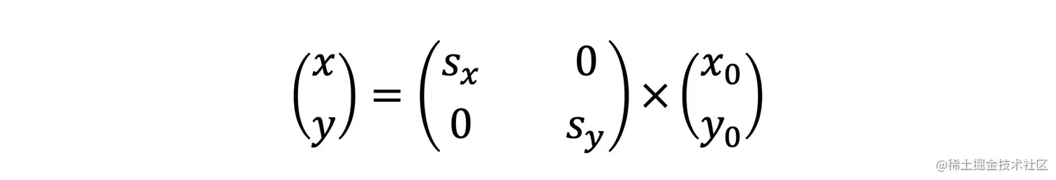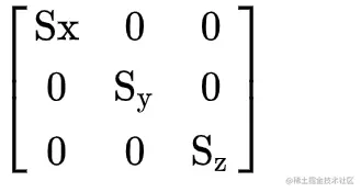 这样等式右边的第一个矩阵就是我们的缩放矩阵了,当然这里是一个二维的缩放矩阵,如果是三维的话,也是这么去推导