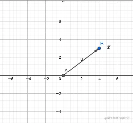 这下能看出来相减的结果实际是第四象限的向量b,因为向量w和向量b长度相等,方向相同,因此这两个向量是相等的,所以为了便于计算,我们把向量b作为向量v减去向量u的结果。