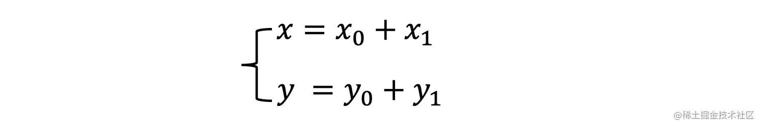平移很简单,假设空间中存在某个向量a(x0, y0),我们需要分别沿x轴和y轴方向进行平移x1和y2距离,很容易得到下面的计算: