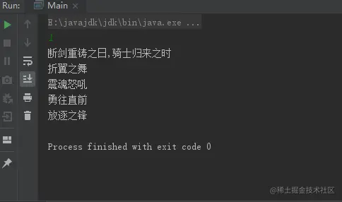 System.out.println("断剑重铸之日,骑士归来之时");