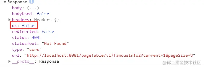 Promise对象。即使后端返回的是 404 或者 500,不会报错,只是将返回Promise对象标记为resolved,且会将 resolve 的返回值的 ok 属性设置为 false。仅当网络故障时或请求被阻止时,才会标记为 reject。 -
