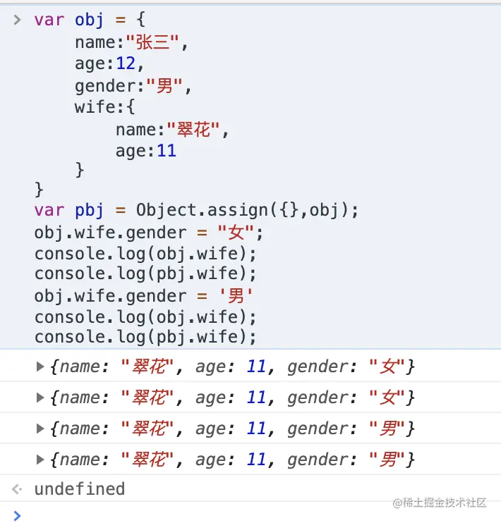 所以,所谓的浅拷贝就是说如果数组或对象的值是基本数据类型,那么两个就是完全没有关联,互不影响的两个数据,如果,其中有引用数据类型,那么两个数据中的引用数据类型还是公用一个地址