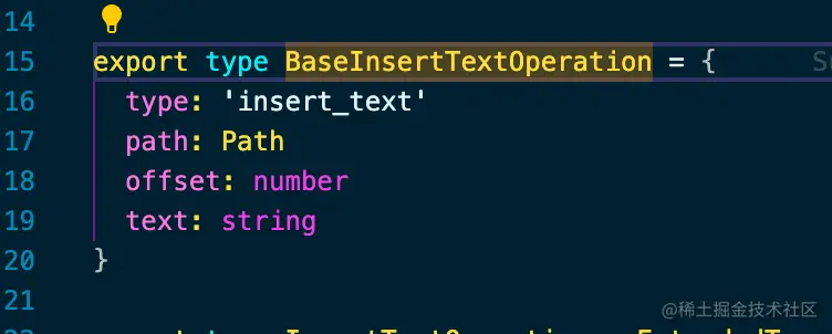 这里我们以TextOperation为例,我们来看怎么表达插入一个文本,offset指插入位置在当前行的偏移,text指插入的文本,path指路[a, b],多数情况下,a指向某一行,b为0。