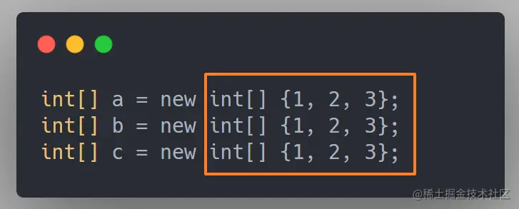 以上这三种方式的效果都是一样的,创建了一个存储 1、2、3 这三个整数的数组。