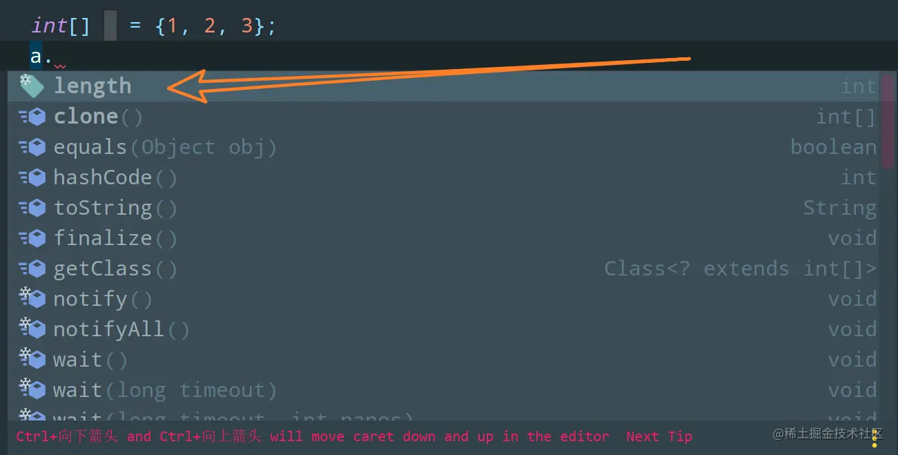 我们通过 IDEA 的联想功能来看看数组能够调用什么东西: