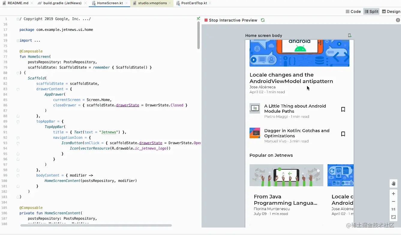 Jetpack Compose大家都不陌生了,它是Google推出的一个新的UI工具包,旨在帮助开发者更快、更轻松地在Android 平台上构建Native应用。Jetpack compose提供了现代化的声明式Kotlin API(取代Android 传统的xml布局),可帮助开发者用更少的代码构建美观、响应迅速的应用程序。自2019年Google IO 宣布发布Compose 以来,备受Android 开发者的关注,我也在一直关注Compose的发展,并且一直看好它在原生Android开发上的应用。19年底,我写了一篇文章: