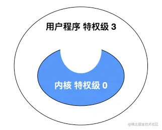 应用程序处于特权级 3,操作系统内核处于特权级 0 。如果用户程序想要访问操作系统资源时,会发起系统调用,陷入内核,这样 CPU 就进入了内核态,执行内核代码。至于为什么是陷入,我们看图,内核是一个凹陷的构造,有陷下去的感觉,所以称为陷入。