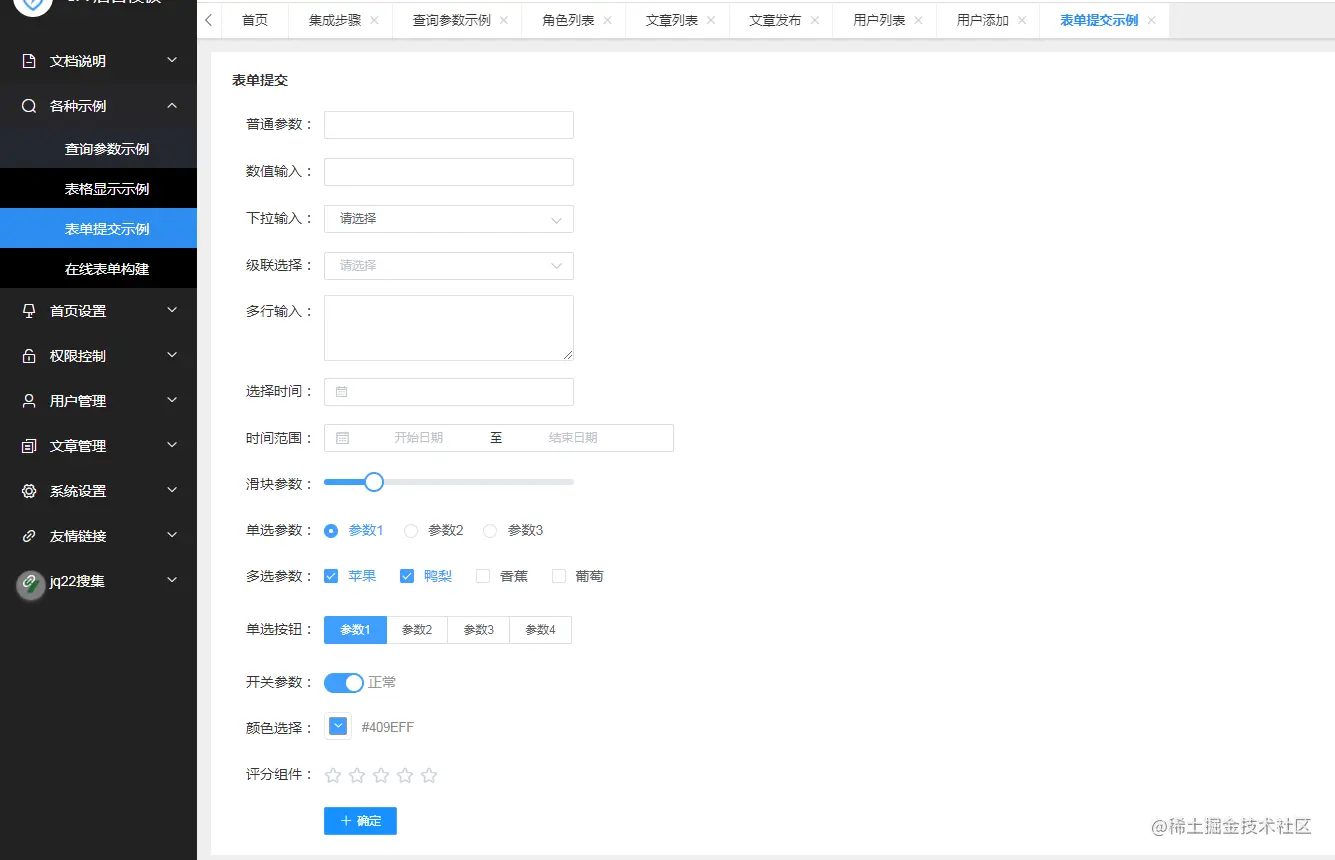 - 模板:提供大量常见示例,以及各种表单的书写方式,助你快速CRUD
