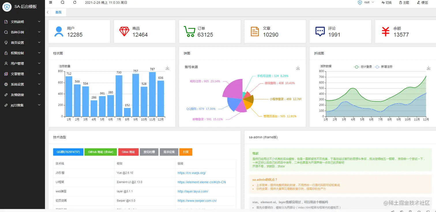 今天小编推荐一款后台模板——sa-admin,一个无需脚手架即可直接运行的后台模板。