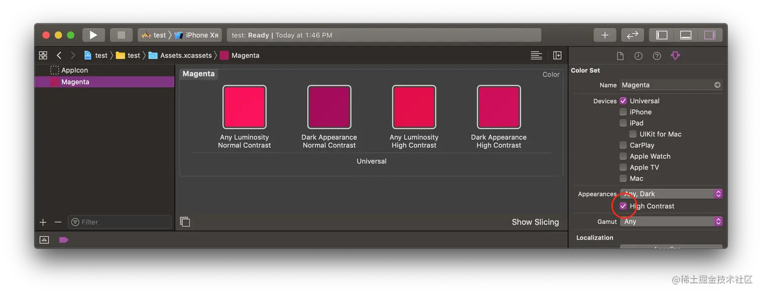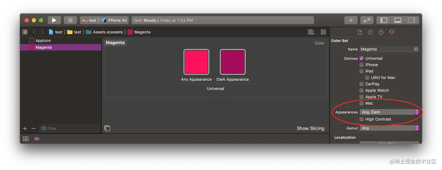 从iOS 11和Xcode 9开始,我们可以在资产目录中添加颜色。