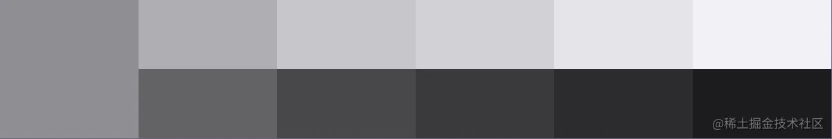 顶部:默认界面中的系统颜色灰度。底部:深色模式下的系统颜色灰度。