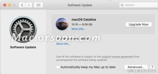 5.重新打开系统偏好设置,“ MacOS Catalina”更新将不再显示为可用