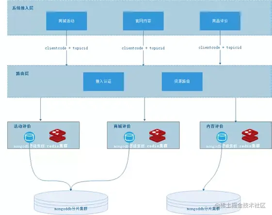 而评论业务不涉及用户资产,对事务的要求性不高。因此我们选用了** MongoDB 集群** 作为最底层的数据存储方式。