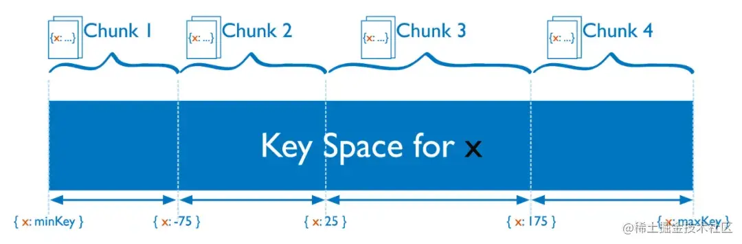 MongoDB 数据是存在collection(对应 MySQL表)中。集群模式下,collection按照 片键(shard key)拆分成多个区间,每个区间组成一个chunk,按照规则分布在不同的shard中。并形成元数据注册到config服务中管理。