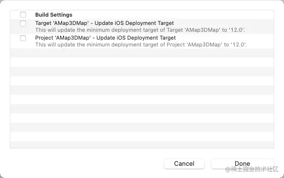 点击Done,此警告消失。再次编译并不会再提示了。但是当第三方库的版本升级后,次警告会再次出现。