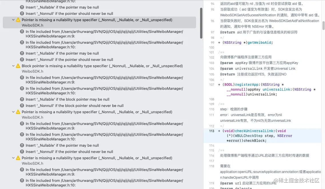 比如:新版本Xcode的**Pointer is missing a nullability type specifier (_Nonnull, _Nullable, or _Null_unspecified)**警告,OC之前的旧代码一般都不想去修改。如果是第三方库的代码,也不想去修改。