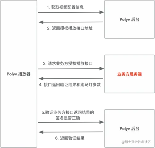 当填写的是完整的URL时,播放器会直接请求,例如:mywebsite.com/interface/v… 当填写的是不带协议头的接口地址时,播放器会根据当前页面的请求协议自动补全。例如填写的是://mywebsite.com/interface/validate,当前页面使用https协议访问,那么实际请求的是:mywebsite.com/interface/v… 当填写的是不带协议头和HOST的接口地址时,播放器会根据当前页面的请求协议和HOST自动补全。例如填写的是:/interface/validate 或 interface/validate,当前页面的域名是mywebsite2.com,且页面使用http协议访问,那么实际请求的是:mywebsite2.com/interface/v… 二、业务方服务端实现 1、播放器端请求